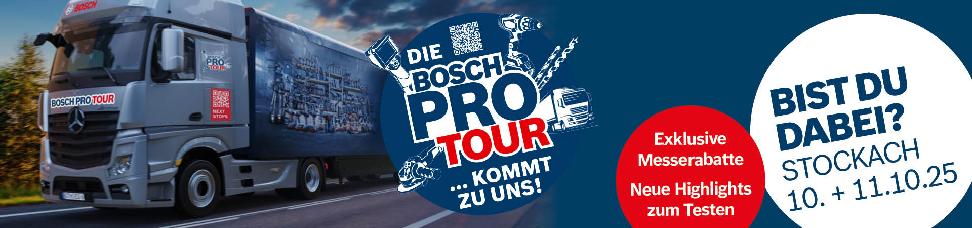 Ein absolutes Highlight erwartet Sie mit der Bosch Pro Tour auf über 200 m² Ausstellungsfläche direkt vor Ort: